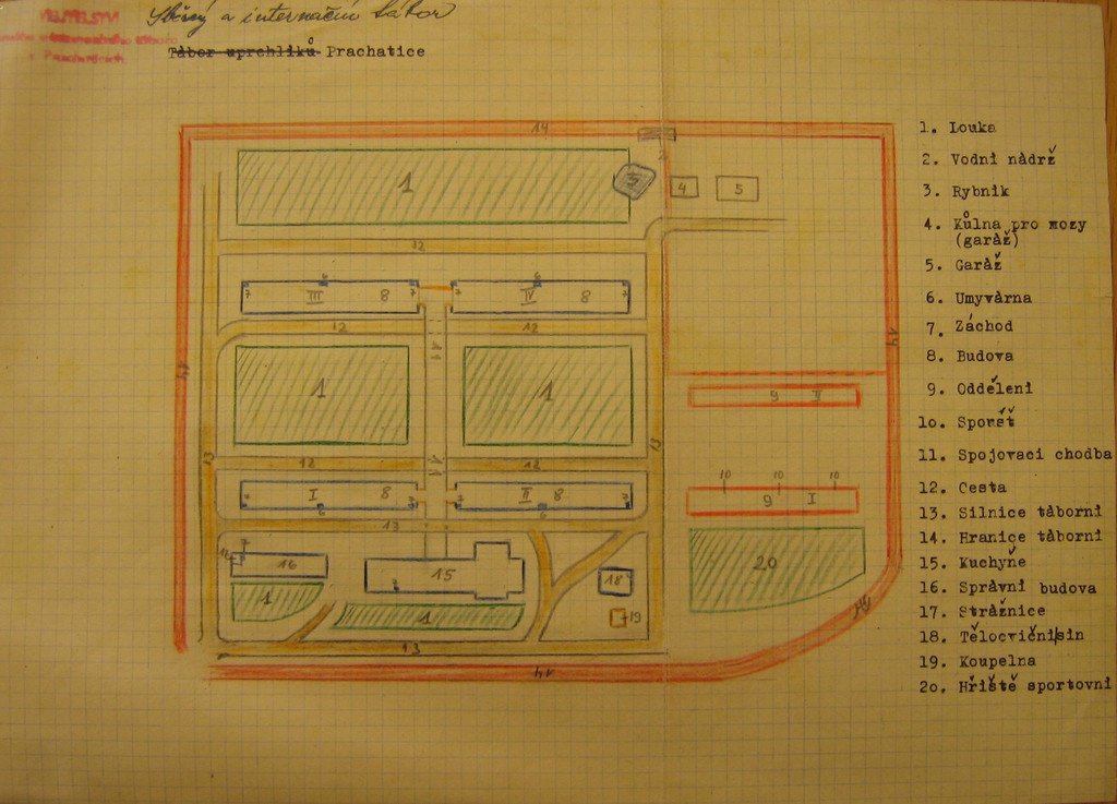 První z dokumentů je nákres plánku tábora. U druhého se jedná o hlášení velitele tábora v německém jazyce z 15. června 1946 o počtu osob, které se v táboře nacházejí. K tomuto datu zde bylo 1626 osob (z toho dva vězni) a 42 pracovně nasazených osob s ubytováním mimo tábor.