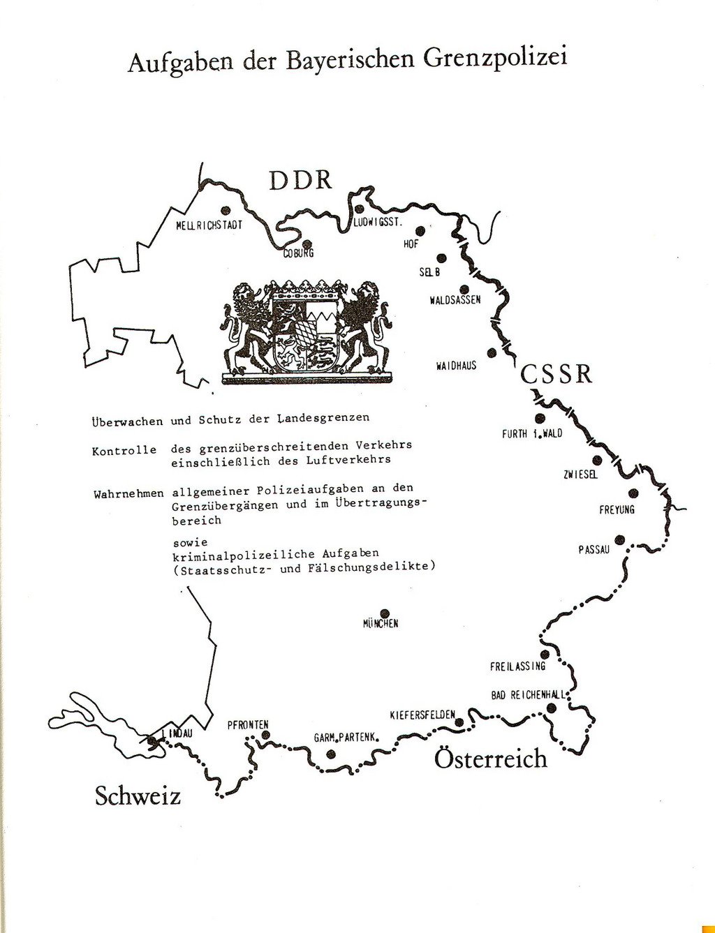 Im November 1945 errichtete die amerikanische Militärregierung die „Bayerische Landesgrenzpolizei“. Die Bundesrepublik Deutschland entstand erst 1949 und wurde nach Kriegsende von den Alliierten verwaltet. 1800 Beamtinnen und Beamte begannen ihren Dienst bei der neuen Behörde. Im Jahr 1989 waren es ca. 3200 Polizistinnen und Polizisten.