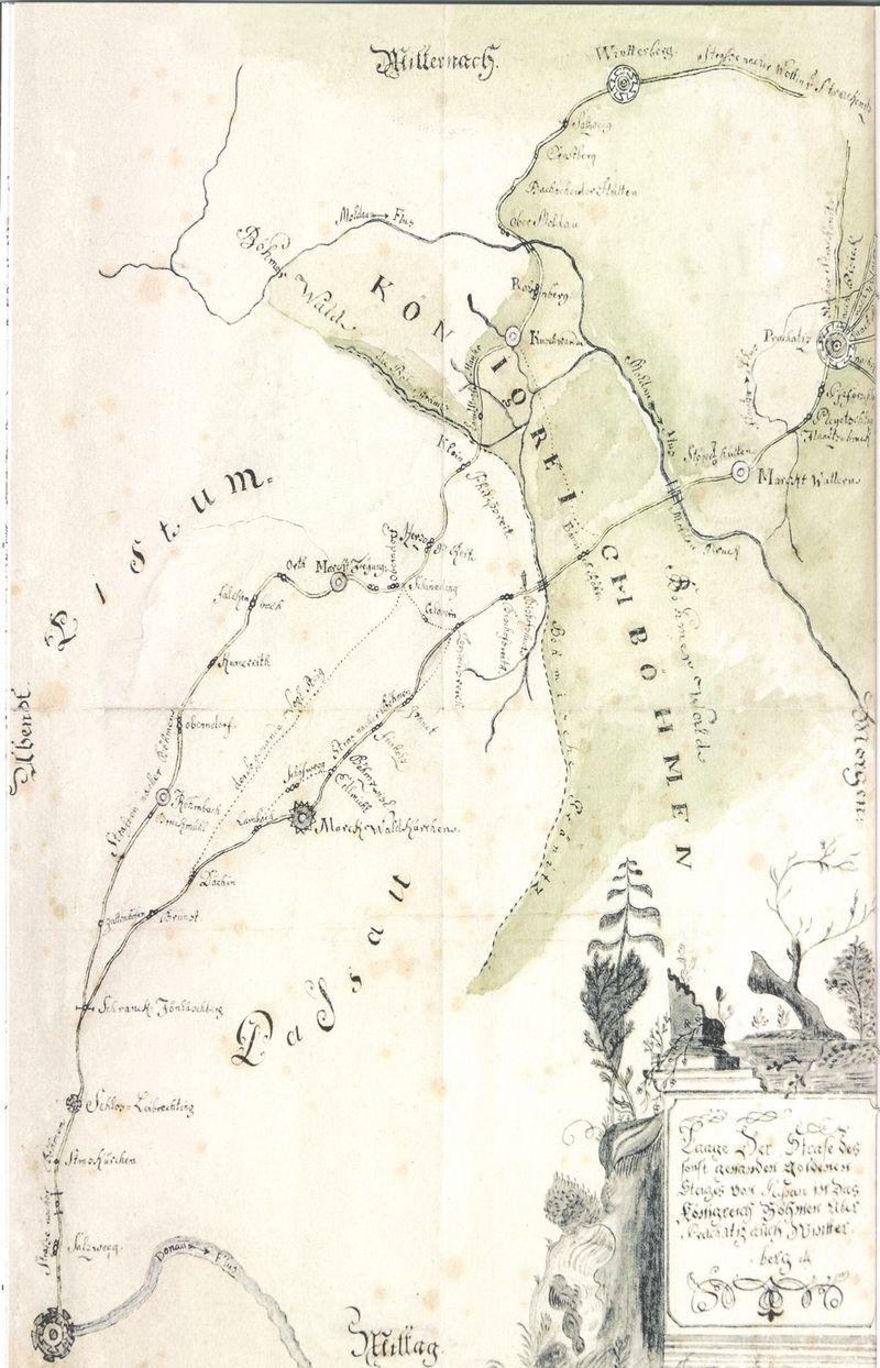 Karte des Goldenen Steiges aus der Zeit um 1735