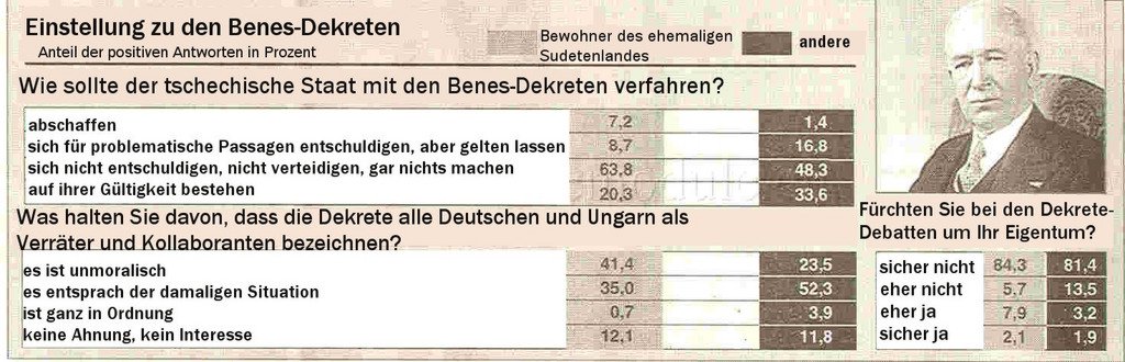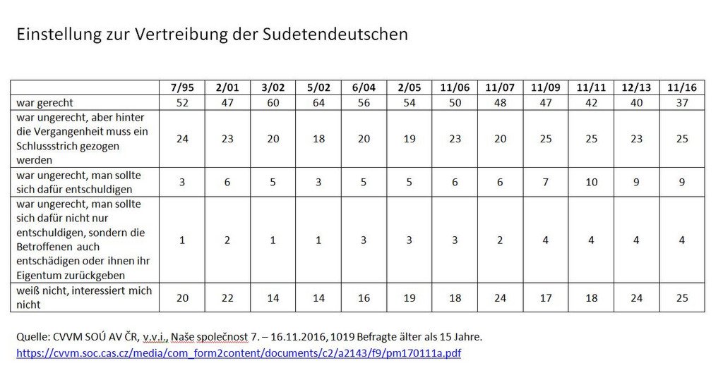 Die folgenden Meinungsumfragen aus Deutschland und Tschechien dokumentieren unterschiedliche Haltungen, die in den beiden Ländern zum Themenkomplex Vertreibung bestehen. Sie können diese als Einstieg in das Thema oder als Ausgangspunkt für eine Diskussion über dessen Aktualität nutzen.